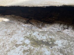 劣化症状は酷く、広範囲でのひび割れ・剥がれの部分は内部まで腐食しているような状態でした(T_T)