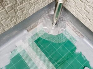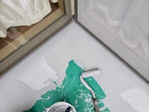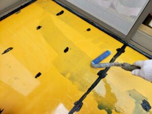 その上にQVシートを貼るのですが、下地調整をしてから糊の役割があるプライマーを塗っていきます。
