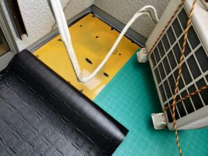 バルコニー底面がかなり傷んでいましたので、下地を新しく張り、その上に防水層を施工いたしました。
